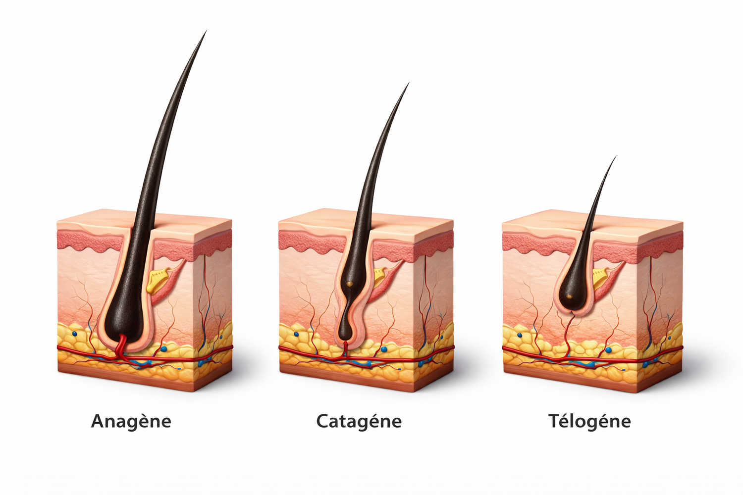 explique l’essentielLe poil ne pousse pas en continu. Il passe par plusieurs phases, et le laser agit surtout quand le follicule est en phase anagène, c’est-à-dire en phase de croissance active. Comme tous les poils d’une même zone ne sont pas synchronisés, plusieurs séances sont nécessaires pour atteindre progressivement les follicules au moment où ils sont les plus sensibles au traitement. C’est l’explication biologique principale du protocole fractionné en plusieurs rendez-vous.